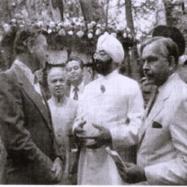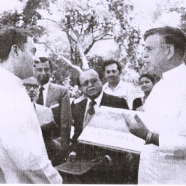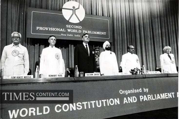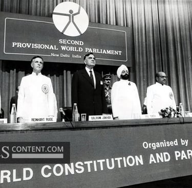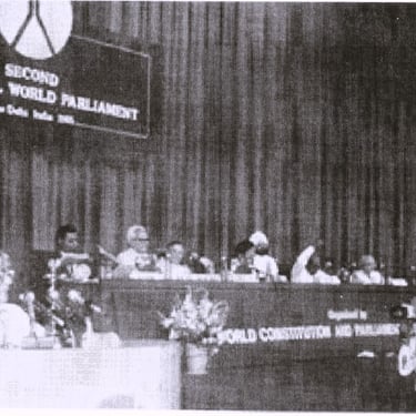 Mr.Samar Basu of World Union signing the Earth Constitution in 1977.